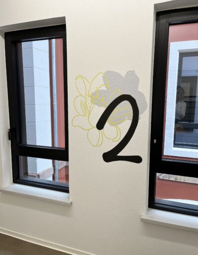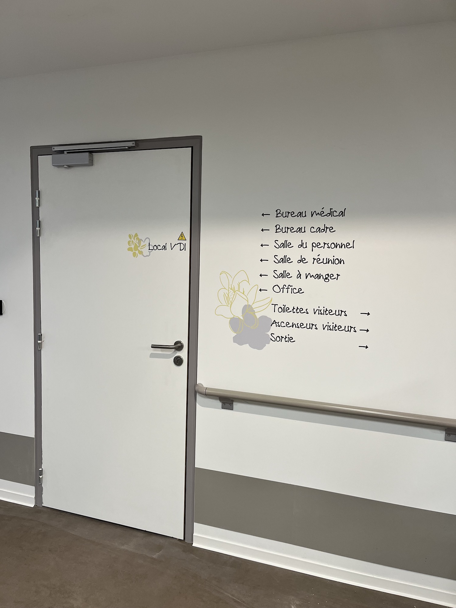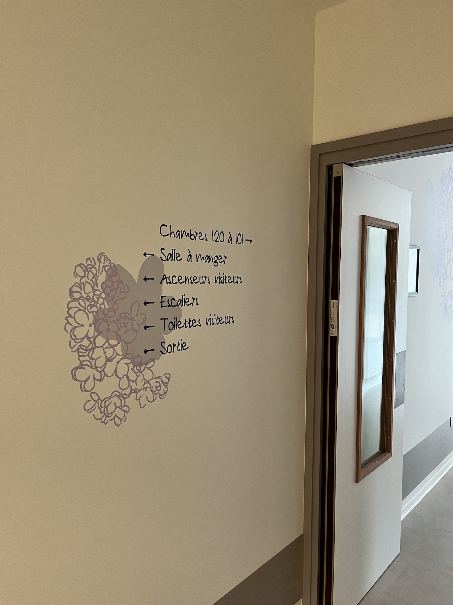 Signalétique artistique, vitrophanie, et PMR pour un EHPAD à Guebwiller